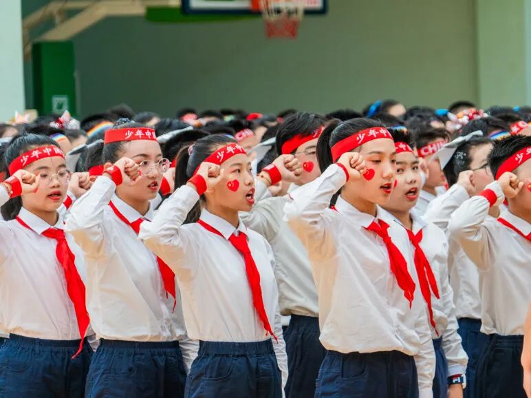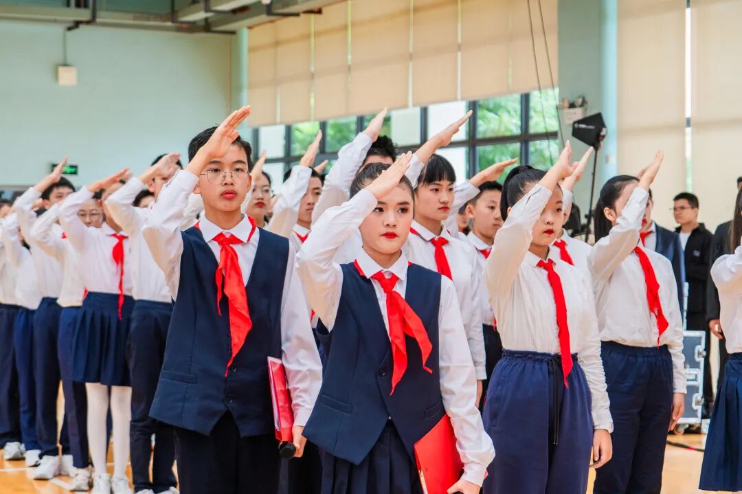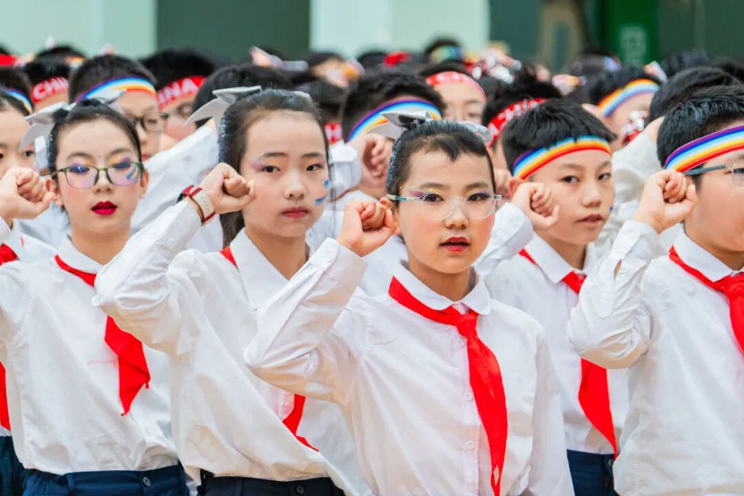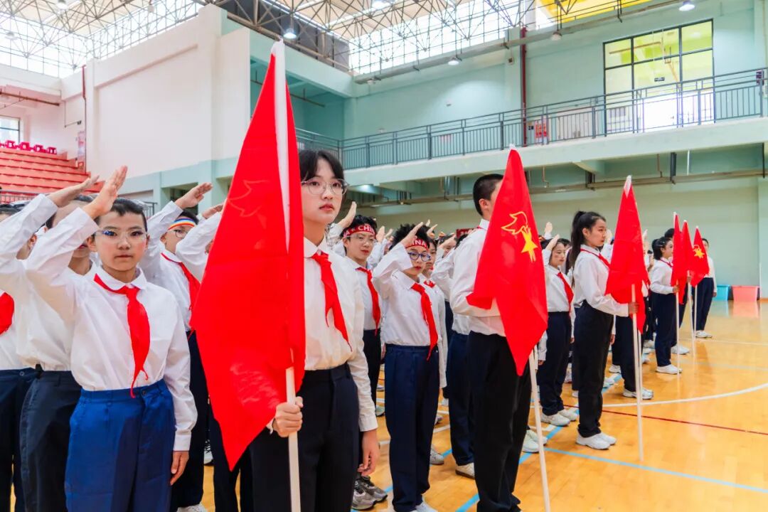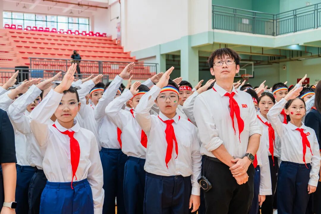 在大队长的带领下,全体少先队员高举右拳,庄严宣誓。“准备着:为共产主义事业而奋斗!”“时刻准备着!”这铮铮誓言不仅是承诺,更是新时代少年向祖国发出的最强音。