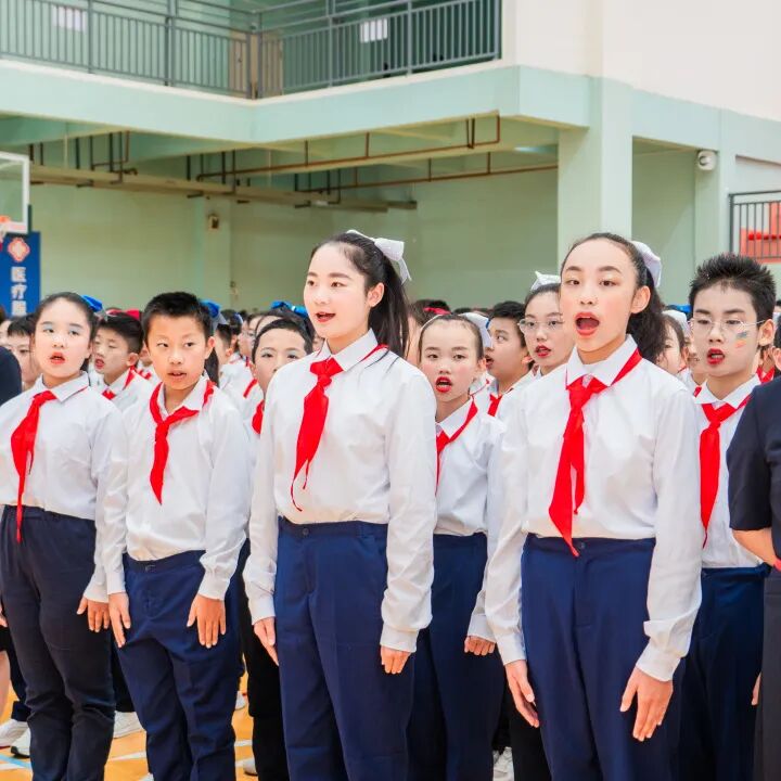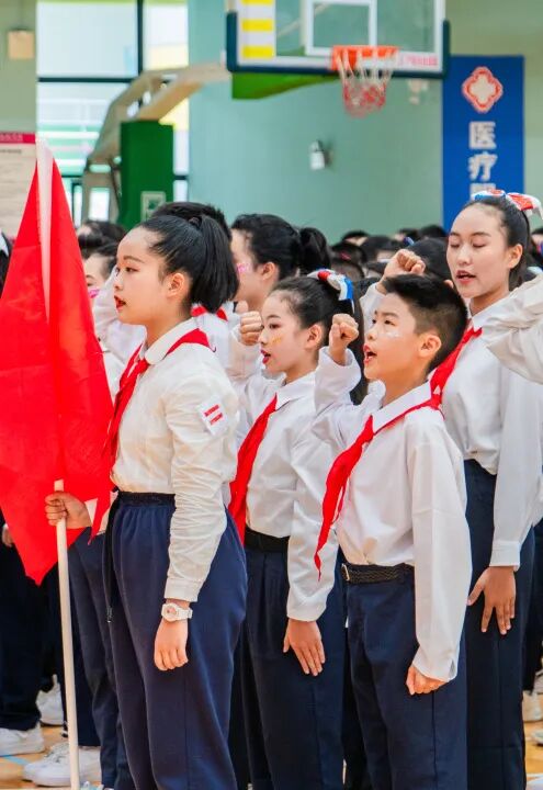 全体少先队员高唱《中国少年先锋队队歌》,嘹亮的歌声响彻会场,展现出润城学子蓄势待发、昂扬向上的精神风貌。