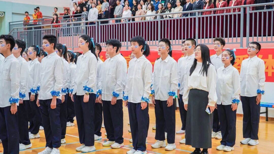 激昂的国歌声中,比赛正式拉开帷幕。高一年级全体师生整齐列队,目光如炬,身姿挺拔。这一刻,歌声不仅是对祖国的致敬,更是对即将开始的比赛立下的铮铮誓言——以最饱满的精神状态,展现润城学子的风采!