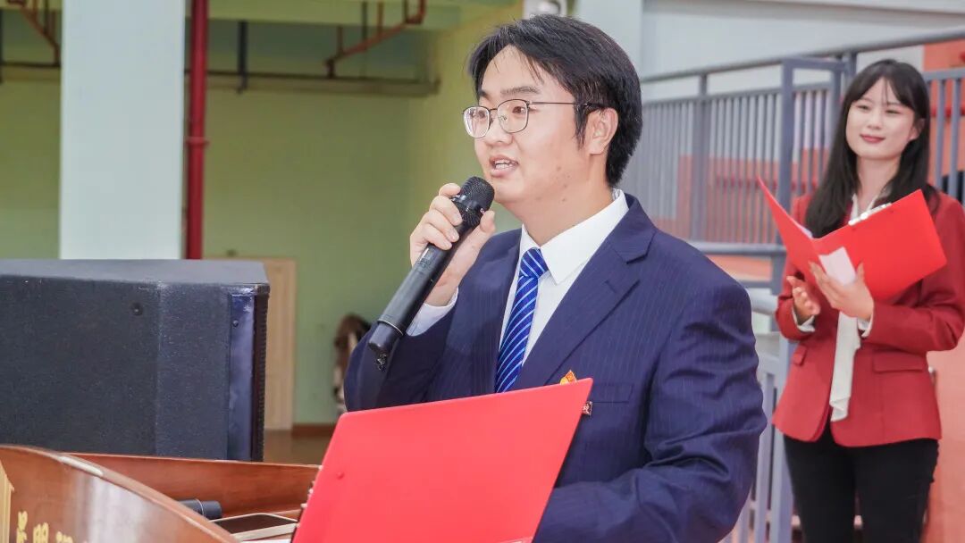 学校学生处副主任张永康老师致开幕辞。他首先代表学校向为比赛付出辛勤努力的师生表示感谢,并向积极参与的同学们表示祝贺。“广播操是校园中一道充满活力的风景,它不仅是锻炼身体的有效方式,更是展现青春风采、凝聚集体力量的重要平台。”同时,张老师还鼓励同学们赛出风格、赛出水平,用行动诠释“少年强则中国强”的青春誓言!