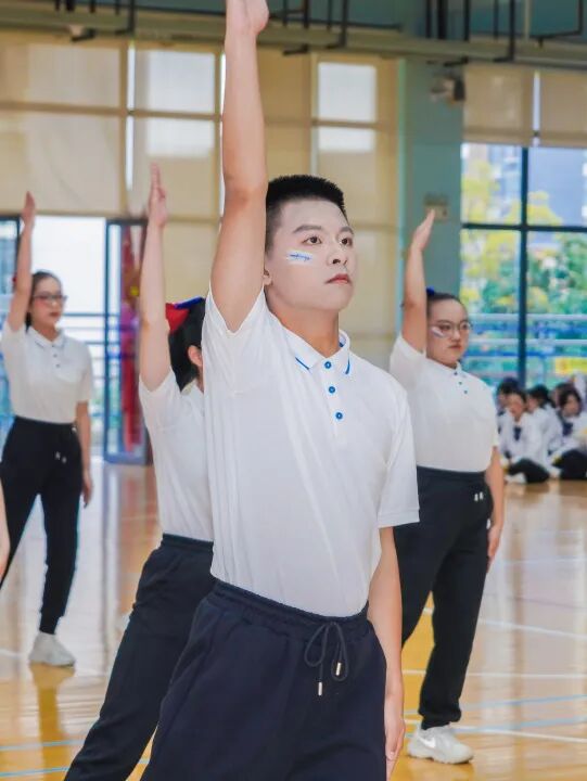 音乐流转间,各班的队形变换各具特色,时而如绽放的花朵,时而如奔腾的浪潮。汗水浸湿了校服,却挡不住少年们昂扬的斗志,每一个标准的动作里,都藏着无数次刻苦训练的坚持,每一张专注的脸庞上,都写满了青春的倔强与热忱。