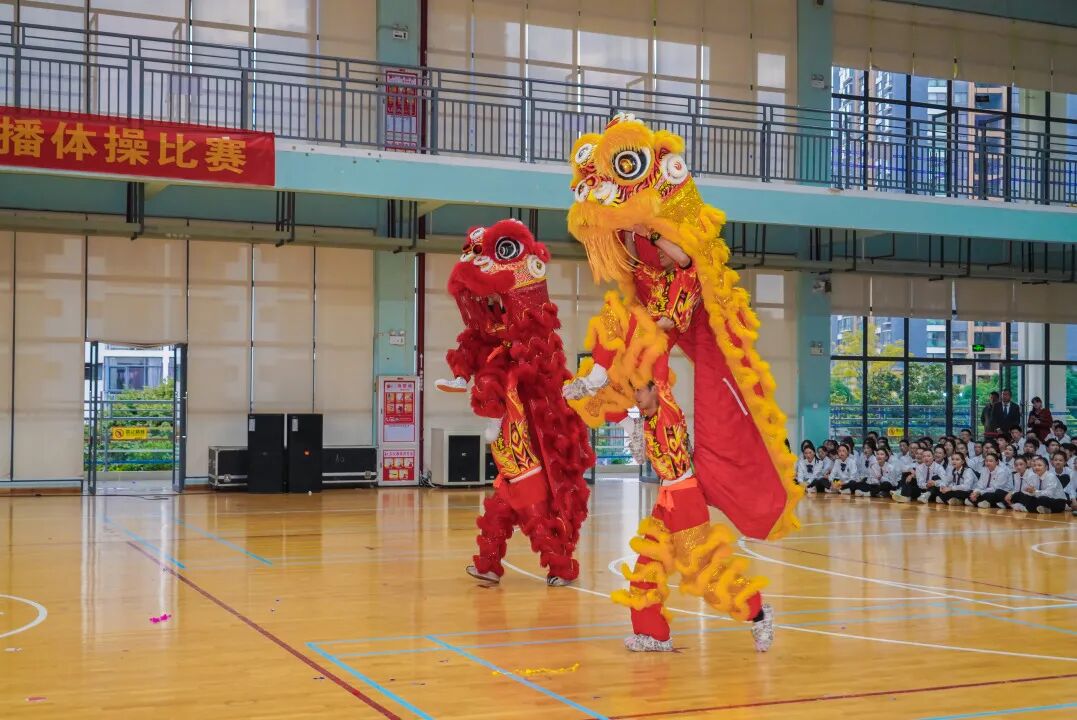 班级比赛结束后,《狮舞鼓韵》表演惊艳登场,瞬间点燃全场气氛。铿锵的锣鼓声中,四只醒狮昂首阔步、摇头摆尾,时而腾跃,时而嬉戏,灵动的姿态将狮子的精气神展现得活灵活现,引得观众纷纷鼓掌喝彩。