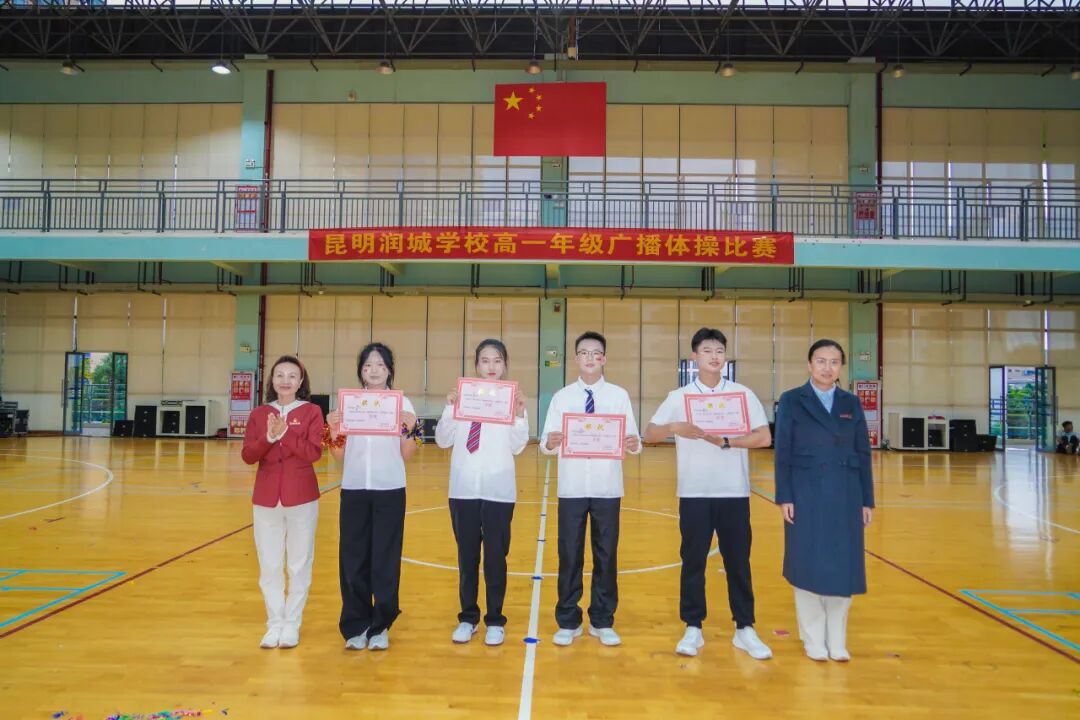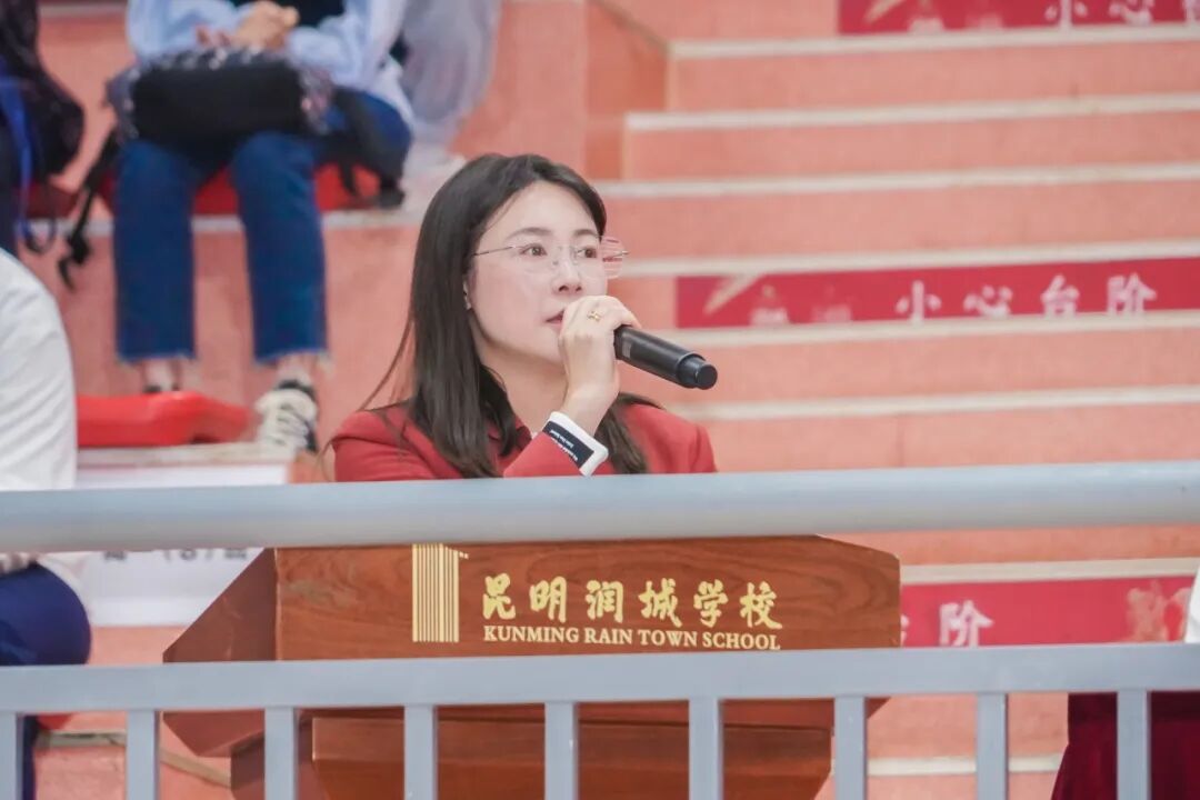 昆明润城学校党委书记强浙华宣布比赛成绩,昆明润城学校校长张梅、德育副校长赵康宏为获奖班级颁发奖状。