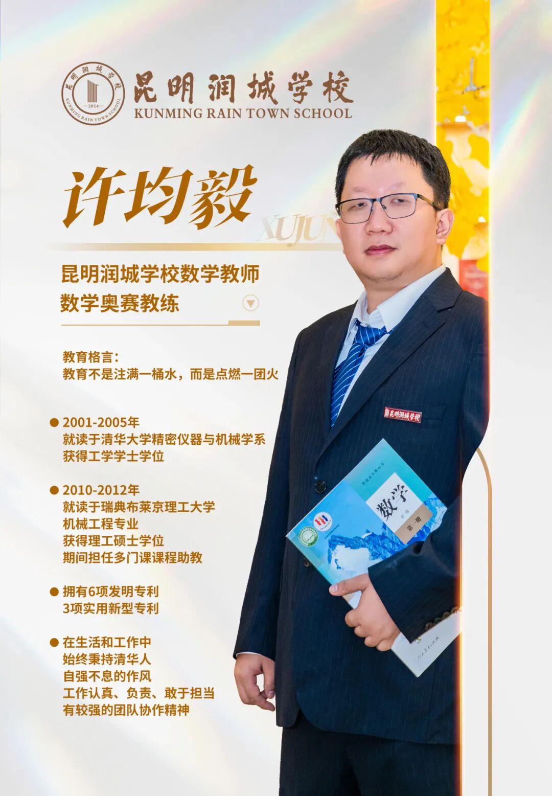 他的履历,像一部写满“破界”与“探索”的书籍:四年级起徜徉于奥数天地,曾获“希望杯”全国数学邀请赛二等奖、物理、化学竞赛省一等奖;他走入中国顶尖学府清华大学,又远赴瑞典深造;他曾是船舶研究机构和自动化设备设计机构的工程师,与精密的设备图纸为伴,手握多项专利,昆明学府路那座精巧的智慧停车场便出自他的设计。他是许均毅,一位不断跨越人生山海的“探索者”。而如今,他的身份定格在昆明润城学校的高中数学教师及数学奥赛教练——这是一场从“解决工程难题”到“求解成长方程”的温暖转向,也是一次价值与理想的深刻回归。