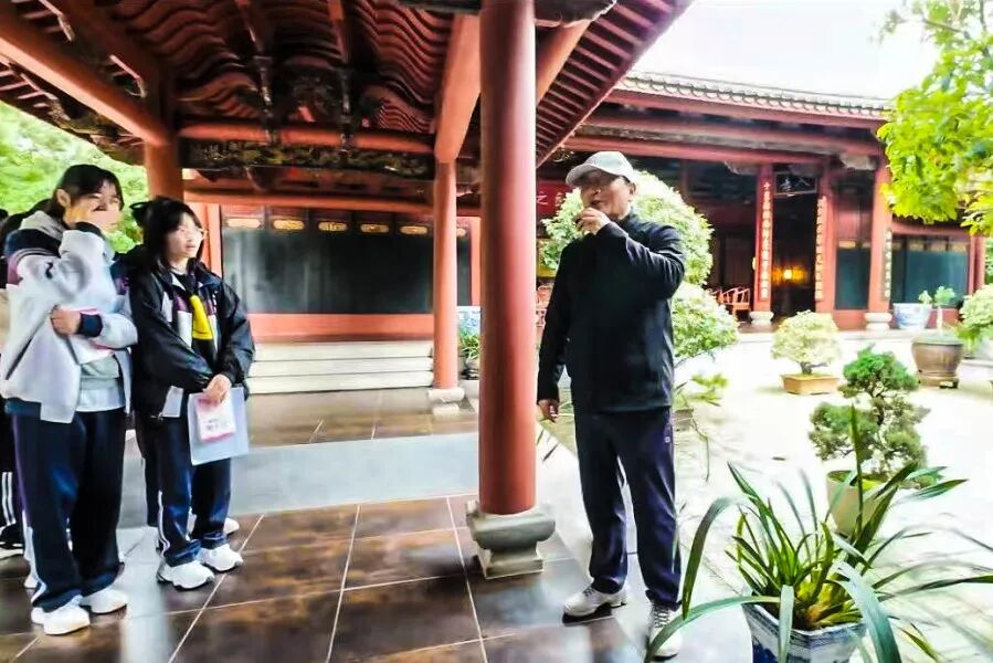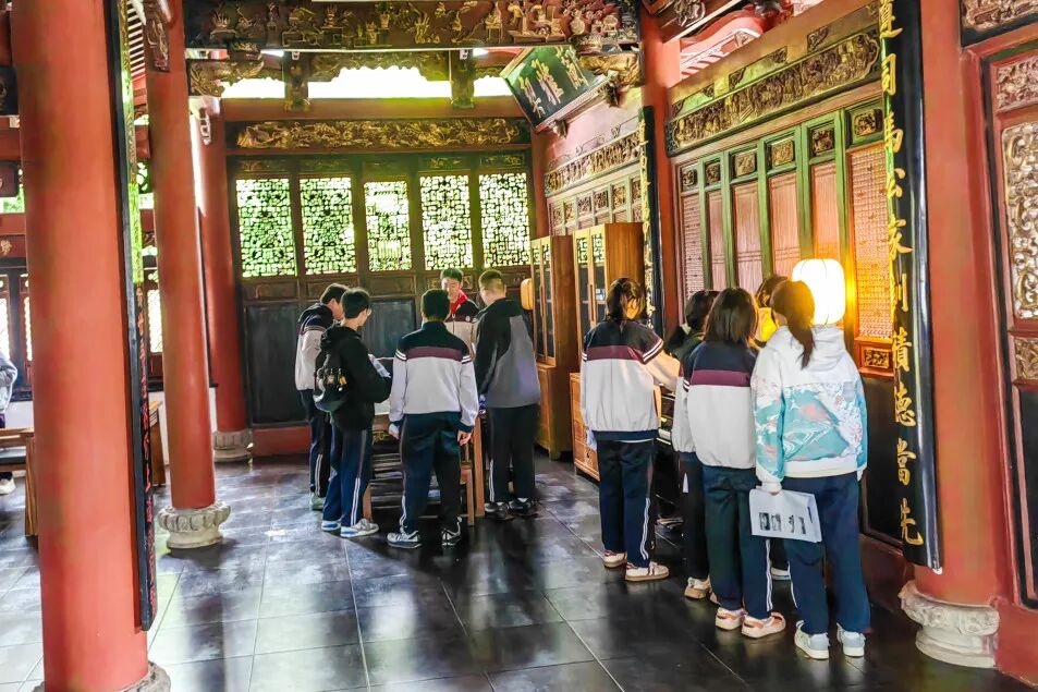 润城书院,原为福建螺洲陈氏家族书院,一梁一柱皆镌刻着历史的印记。正堂高悬的“螺洲书院”匾额,出自溥仪之师陈宝琛手笔;八幅匾额与十五副对联,无声述说着“积学储宝”“琴韵书声”的雅意追求。黑朝明副校长亲临活动现场,寄语学子从书院文化中汲取精神养分,以先贤智慧照亮前行之路。他特别引用正厅对联“瑾瑜发奇光,诗书敦夙好”,勉励学子如美玉般磨砺品德、绽放光华,以诗书涵养性情、坚守初心。